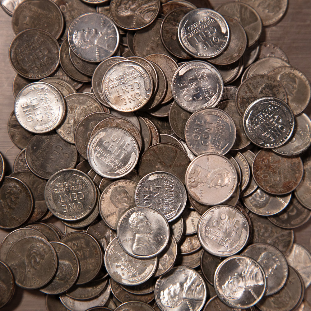 - One (1) Lot of ONE HUNDRED 1943 P/D/S STEEL Wheat Pennies CULL/AG TO GOOD OR BETTER
